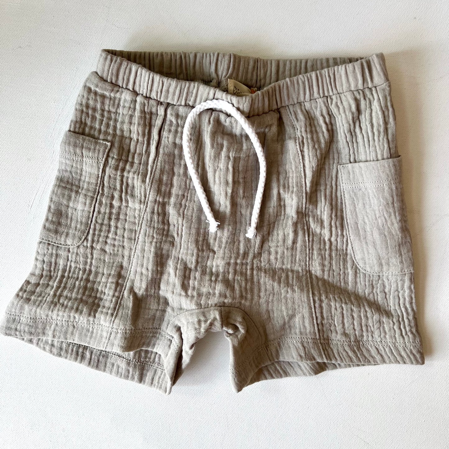 Made in the softest gauze with a gentle elasticated waist for all day comfort. Side patch pocket and cute little rope trim detail. Mix and match with all our tees and shirts