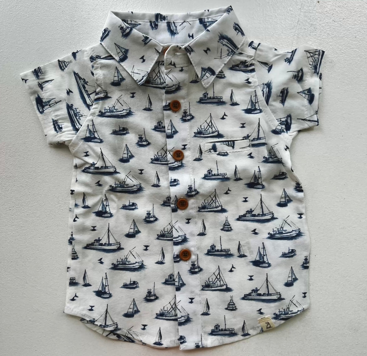 Short Sleeve Button-Up | Navy Boats